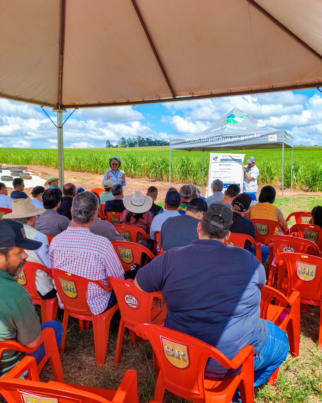 Outra questão fundamental para a pecuária de corte é a alimentação do rebanho. A agrônoma Simony Lugão e o zootecnista Vinicius André, do IDR-Paraná, apresentaram como alternativa o cultivo e manejo do Capiaçu. A forrageira é uma opção para o criador obter a adequada oferta de alimento volumoso para os rebanhos, principalmente no período de outono e inverno.