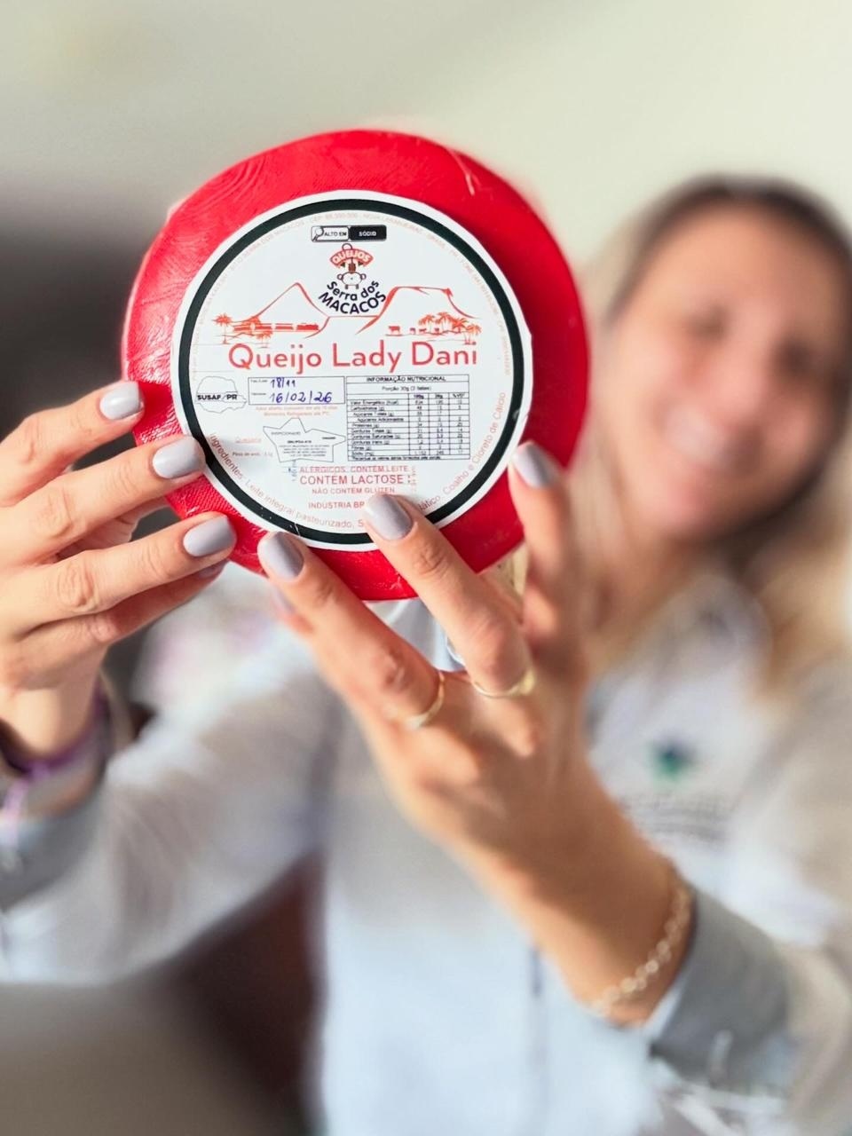 Em outubro deste ano, a queijaria Serra dos Macacos, de Nova Laranjeiras, no Centro-Oeste paranaense, lançou um novo queijo e o batizou de Lady Dani. O nome homenageia a técnica do Instituto de Desenvolvimento Rural do Paraná (IDR-Paraná), Daniela Ragazzon, que atende o local desde 2018. O desenvolvimento do novo queijo começou a partir de um estudo de mestrado realizado pela própria técnica na propriedade. O gesto dos proprietários, Ozana Padilha Moreira Kaveski e Dougles Kaveski, demonstra o carinho que eles têm com a Daniela e a confiança na equipe do IDR-Paraná. A homenagem faz referência ao serviço prestado e a toda a dedicação dos profissionais na agroindústria da região, que agora ficam eternizados na marca. O que ninguém sabia é que haveria uma surpresa durante o evento de entrega da certificação Susaf-PR para a queijaria.