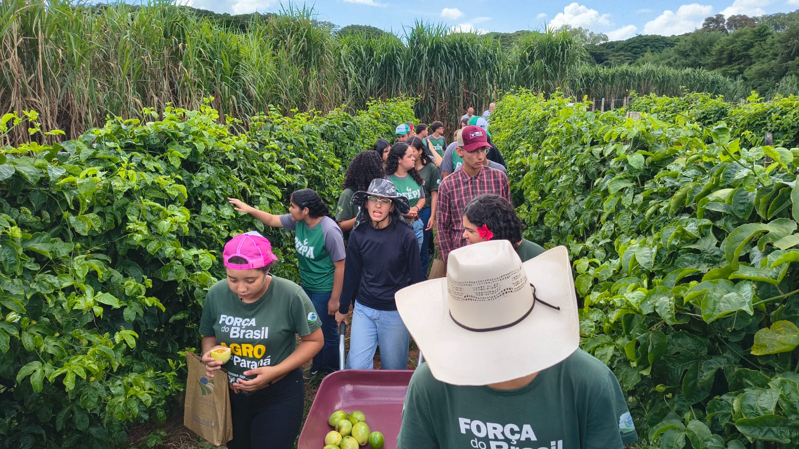 No Eixo Sudoeste, duas capacitações atraíram grande público: uma oficina sobre manejo agroecológico de formigas cortadeiras, com 41 produtores, técnicos e pesquisadores, e um workshop sobre controle biológico de doenças de plantas, que reuniu 121 participantes e contou com especialistas da UTFPR (Universidade Tecnológica Federal do Paraná) e da Embrapa. A região também recebeu a visita técnica de estudantes e professores da organização francesa Sous l’Ombre de l’Arbre, que documenta experiências em sistemas agroflorestais na América do Sul. Já no Eixo Noroeste, estudantes de um colégio agrícola estadual de Paranavaí participaram de atividades práticas em áreas de produção de maracujá, acompanhando a colheita em sistema de manejo orgânico.