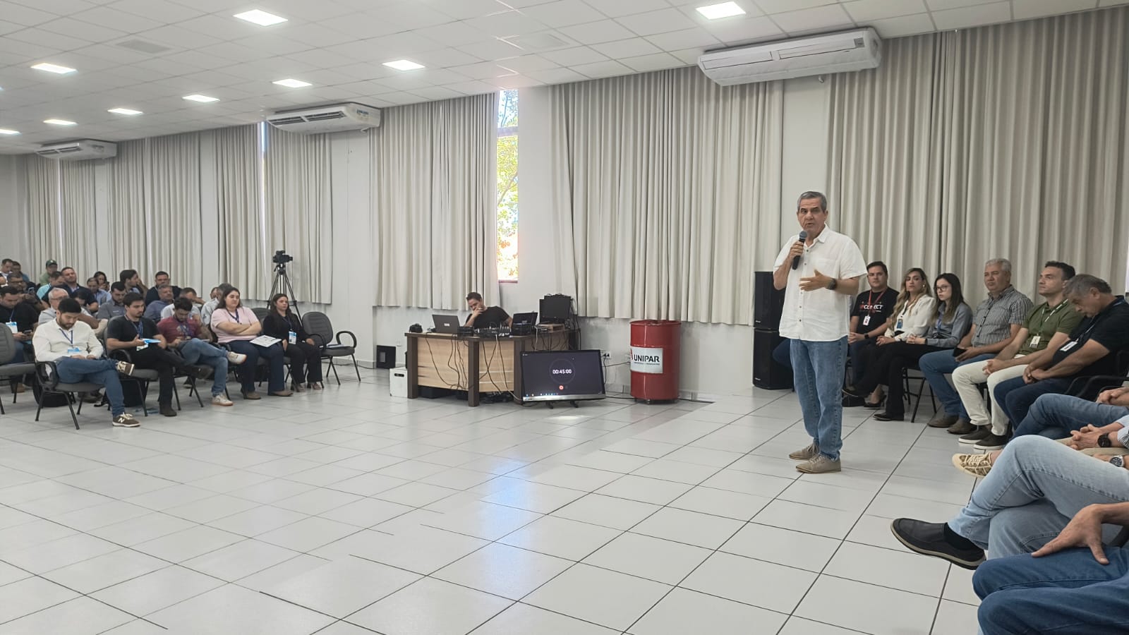 Começou nesta quarta-feira (26), em Cianorte, o 1º Encontro Paranaense de Irrigação, iniciativa do Sistema Estadual de Agricultura (Seagri) voltada a produtores rurais, técnicos, lideranças e profissionais do setor. O ponto alto do evento é o programa Irriga Paraná, criado pelo Governo do Estado, e a proposta é o fortalecimento da agricultura irrigada e o estímulo a sistemas produtivos mais eficientes, promovendo capacitação, integração e difusão de tecnologias. Cerca de 150 pessoas, inclusive representantes de 40 municípios da região, participam do evento, que acontece no anfiteatro da Universidade Paranaense (Unipar).